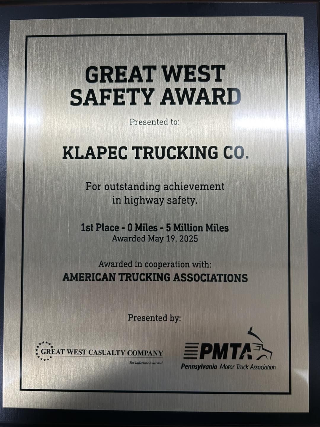 At Klapec Trucking, recognition isn’t just about what we achieve — it’s about how we operate, how we treat people, and the pride we take in doing things the right way.